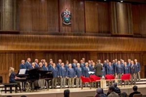 On Thursday 7th we sang at the 100th Theology Public Lecture at the Great Hall, Swansea University Bay Campus. This is a new venue in Swansea and we were the first choir to have the privilege of singing here. These series of lectures have included such speakers as BBC newsreader Huw Edwards, The Most Reverend and Right Honourable Dr Rowan Williams and The Right Honourable Ann Widdecombe DSG. The main speaker this time was The Most Reverend Paul Richard Gallagher, Secretary for the Holy See’s Relations with States (The Vatican’s Foreign Minister) and he was supported by comedian Don McLean. We opened the evening with ‘Cwm Rhondda’ and we soon realised that this will become a very popular venue in which choirs will want to perform. The sound of the choir, piano and organ in full flow was superb. Thanks to Reverend Nigel John, the University Chaplain for inviting us to the event. We are also very lucky to have moved our rehearsal night to this wonderful venue.