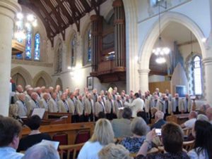 The following night we had a joint concert with Newquay Male Choir, from Cornwall. They were on a short tour to Wales and had sung with Tonna Male Voice Choir, in Neath, the night before. The concert was held at St Mary’s Church, in the centre of Swansea, and this proved to be a great venue. There was a large audience and they were well entertained by our visitors who started with ‘When the saints go marching in’. Although they were a small choir they made a great sound and were very disciplined. During the evening they sang a number of well known pieces and a few Cornish songs. We also sang items from our normal repertoire but a highlight was the singing of ‘How Great Thou Art’, which we have been learning over the last few months. This is a new setting and the wonderful acoustic in St Mary’s helped to make this item, with its terrific climax, a huge success. The concert was very kindly sponsored by Tomos Watkin Brewery and Liberty Homes and we thank them for their tremendous support. We finished with ‘American Trilogy’ and then the two choirs joined to sing ‘Morte Criste’, which was a fitting end to a lovely concert. We all then adjourned to the ‘Cross Keys’ where a buffet had been prepared for us.