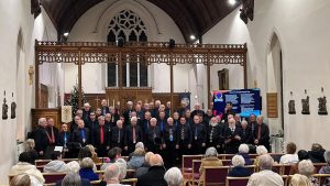 One of our consistently successful venues is All Saints Church, Oystermouth, with a good seating capacity and lovely acoustics. Thus, our annual concert for Maggies was held on the 15th December, also featuring the Pontardulais Brass Band, was the biggest event of the season and once again hugely popular. The Ladies’ section once again organised their annual concert at the Scout HQ on the 13th December and this was another success. A Christmas Concert that always receives a really great reception is at the Vivian Hall, Blackpill, on the 19th December where we have trouble fitting in the choir and the audience. Somehow, they managed to get us all in and the crowd, including the Lord Mayor Mike Day and his good lady, gave us a very warm response.