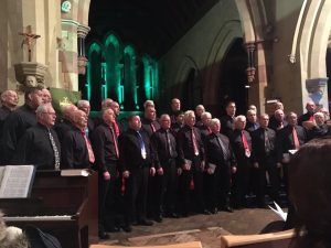 On Saturday 10th we sang at the wedding of Katy Smith at St Hillary’s Church, Upper Killay. We sang our usual requests before the bride arrived including ‘Somewhere Only We Know’, ‘Merry Christmas Everyone’ and ‘Stop The Cavalry’. The bride had requested that she walk in to the choir singing ‘Silent Night’ and there were a number of people from ‘over the border’ present so we were requested to sing ‘Calon Lan’ and ‘Delilah’ at the signing. We have been told that all our English friends present had never heard a male voice choir at a wedding before and they were so impressed that they now want a choir at their own weddings. We are available!