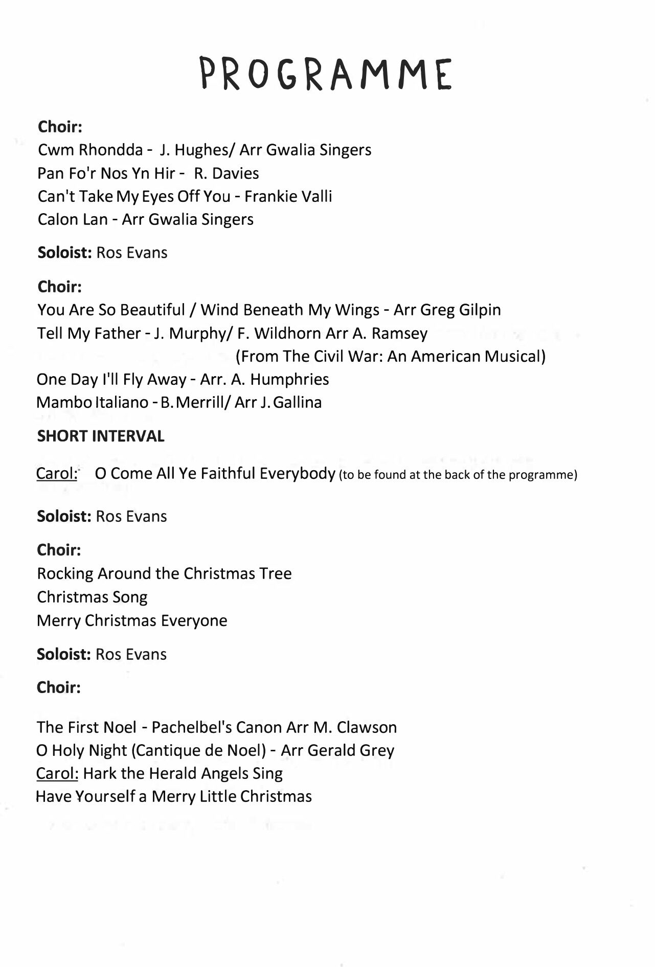 Our second concert went ahead in All Saints Church on the 16th December in Oystermouth and it was a great success. We, along with the soprano Ross Evans, sang to raise funds for Maggie’s, a local Cancer support charity. We were able to christen our new staging that we had purchased before the pandemic. We sang a mixture of music including some new songs from our repertoire and well as some of our traditional Christmas songs (see the programme).