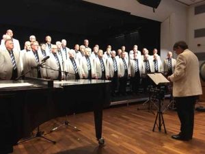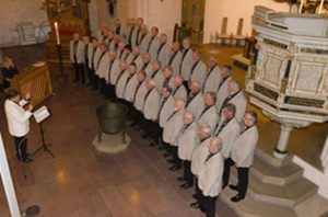 The next day we were up early and travelled to the small town of Plon and went on a boat trip around Lake Ploner. This took a couple of hours and we returned to the hotel to get ready for the evening concert. This was the main event of the tour and we sang with Chor Kronshagen at the Burgerhaus, Kronshagen. It was a very large hall and there were over 400 people in the audience with many local dignitaries there also, including the Mayor. It was also 99th year of the existence of Chor Kronshagen. It really was a special event and Chor Kronshagen sang a very varied programme with music from all ages. They finished their first set with ‘Ar Hyd Y Nos’ (They have had a long association with a choir from North Wales) which they sang in Welsh! We then sang our first set, which included ‘Sanctus’, by Schubert, which we sang in German, and finished with ‘Cwm Rhondda’ which brought the 400 strong audience to its feet in appreciation. We don’t remember having a standing ovation in the middle of a performance before! Following the interval it was pleasing to hear Chor Kronshagen singing some modern songs and they included ‘Can you feel the love tonight’ and finished with Michael Jackson’s ‘Heal the World’. A lovely performance, and the 50 singers in the choir made a very beautiful sound, and were well directed by their MD, Imre Sallay. We then sang our final set and again received a standing ovation where another item was demanded. We obliged by singing ‘As Long As I have Music’, which was a fitting end to another great performance by the boys. However the concert did not finish there as both choirs joined together to sing the amazing ‘O Fortuna’ and ‘Fortune Plango Vulnera’ from ‘Carmina Burana’ by Carl Orff (Many will remember ‘O Fortuna’ as the music from the ‘Old Spice’ advert many years ago!). This was directed by Nick and accompanied by Imre, on the piano, and Stefan Bihary on percussion. The choirs made a great sound and did really well to keep everything together. Many presentations were made to conclude a wonderful evening of singing, and hopefully, we may all meet up again someday. The most sumptuous buffet followed the concert and wine and beer flowed which was much appreciated by everyone and many thanks must go to Chor Kronshagen for providing this. We even managed to sing a few more items including ’Freunde Schenket Ein’ which we sang in German to our hosts.