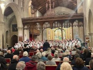 One of the highlights of the Gwalia Singers calendar is Maggie’s Christmas Concert in All Saints Church. The Choir looked forward to a wonderful evening of music and festive spirit with the Pontardulais Town Brass Band, and the incredible acoustics of the Church. The first half commenced with traditional congregational carol-singing to the accompaniment of the Band. They then played a selection of their repertoire with some solo recitals – very accomplished performances and talent indeed! The Gwalia Singers followed with their repertoire selection, and their rendition of ‘Gwahoddiad’ was dedicated in memory of Laurence Sutton, their much-loved fellow chorister who passed away a fortnight ago.