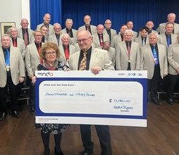 Deputy Chairman Mike Phippen paid tribute to the former President Mr. Geoff Wheel in the second half, for his incredible commitment to the Gwalia Singers. He then donated a cheque for the sum of £11,030 to Janet Fisher from MND South West Wales, in Geoff’s honour. An amazing sum raised recently by the Choir! A huge ‘thank-you’ to Mike Phippen and all individuals and businesses who supported the cause.